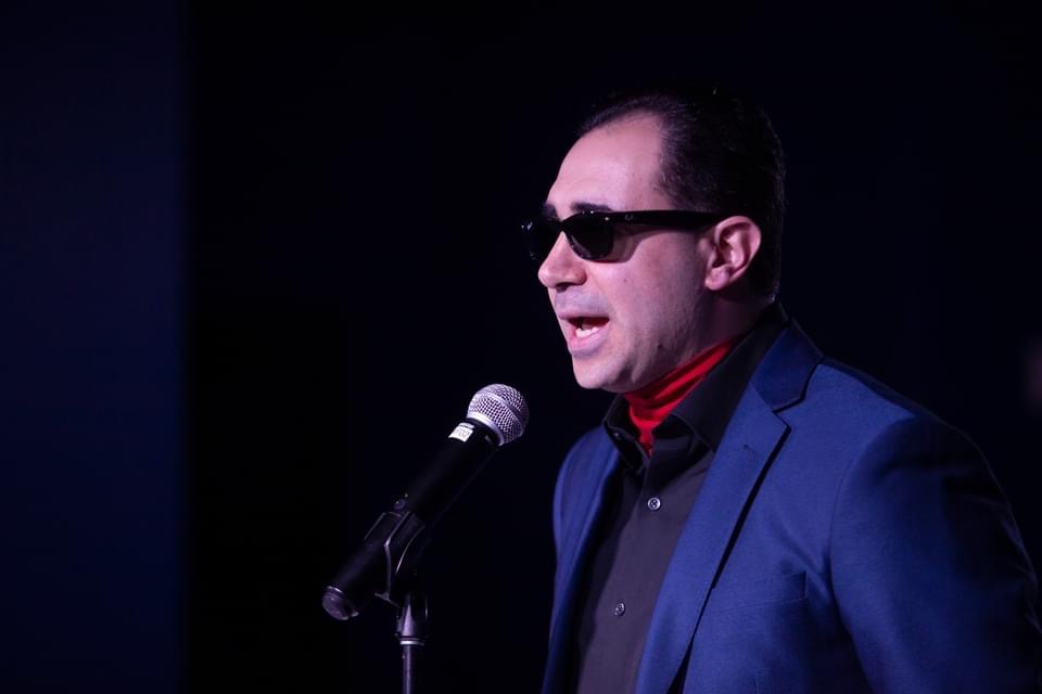 Yousef Alqamoussi (realwordman) performs as WORD MAN on Wednesday, February 15, 2023 at the Arab American National Museum in Dearborn, Michigan.